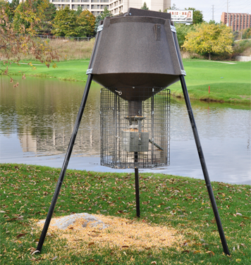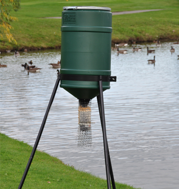 The feeding stations are placed where the presence of Canada geese can be tolerated by the customer. This area can be quite small and the geese are effectively constrained and restrained to this space.
