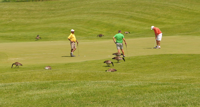 Canada Geese make public use of turf unpleasant. Geese eat up to 3lbs of grass per day and may expel up to two pounds of fecal matter which foul properties. Canada Geese are known to be aggressive to humans, particularly when protecting their nests and young.
