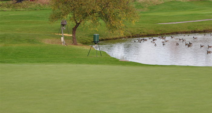 Avian Technologies uses automated dispensing machines with feedstocks preferred by geese over naturally occurring vegetation. The company uses a formulation of Methyl Anthranilate approved for use by both the EPA and the PMRA combined with feedstock to reliably control the location of Canada Geese on a given property. Our solution is automated and results are achieved within days of deployment – results are effective and dramatically so.